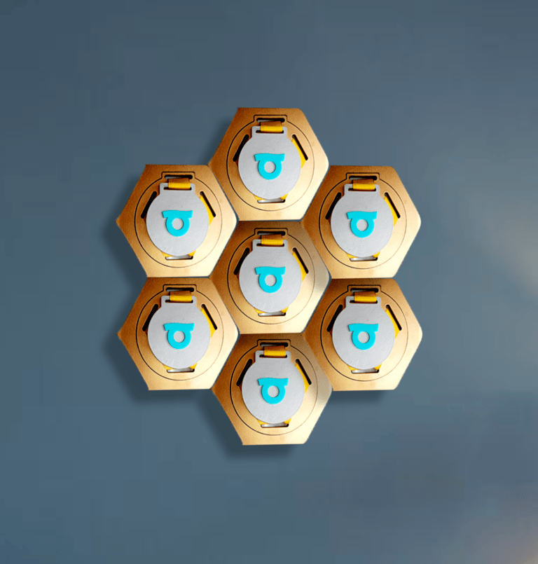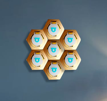 ✓ formato sextavado projetado para alocar em sua geometria outras peças do modelo COLMÉIA-PMA de acordo com suas conquistas de medalhas.